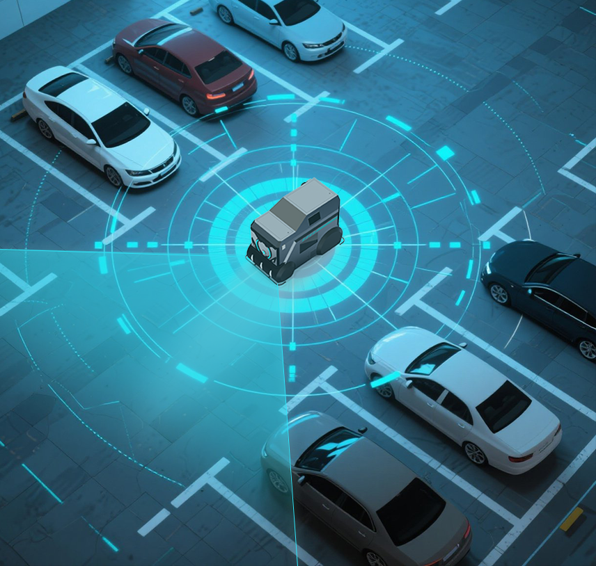 四轮全向移动让它能在狭窄或复杂环境(如停车场)中灵活转向,实现全方位自由移动